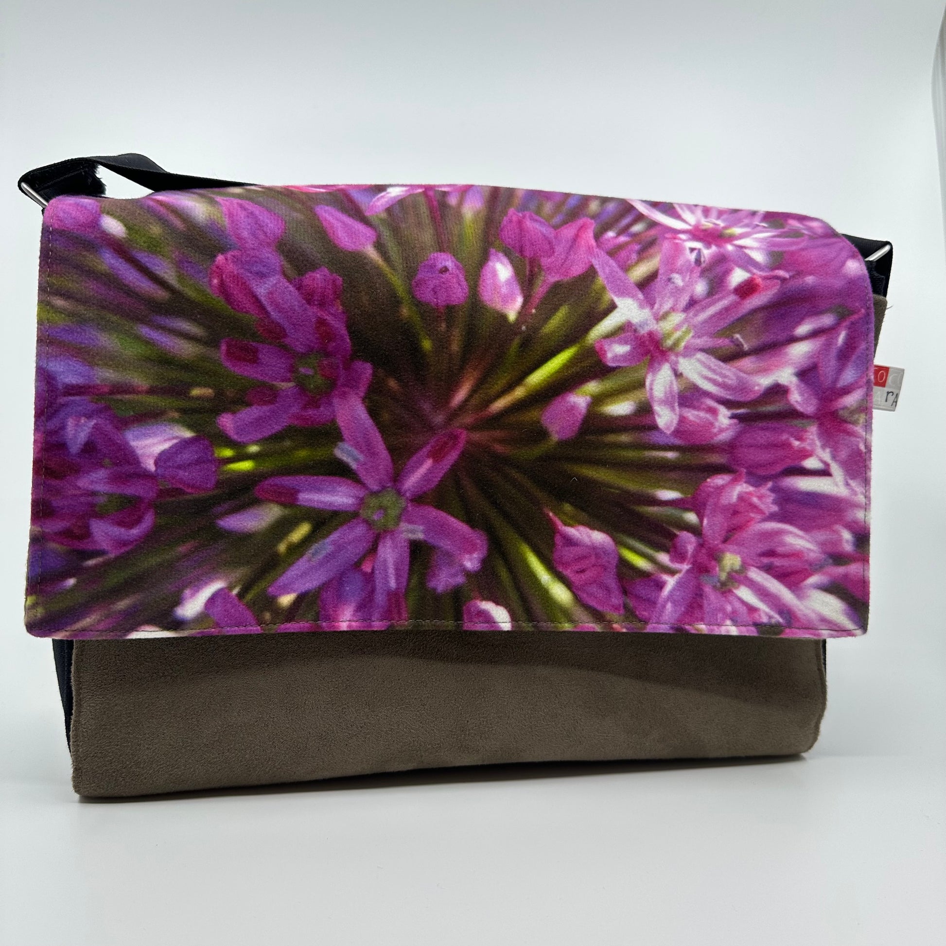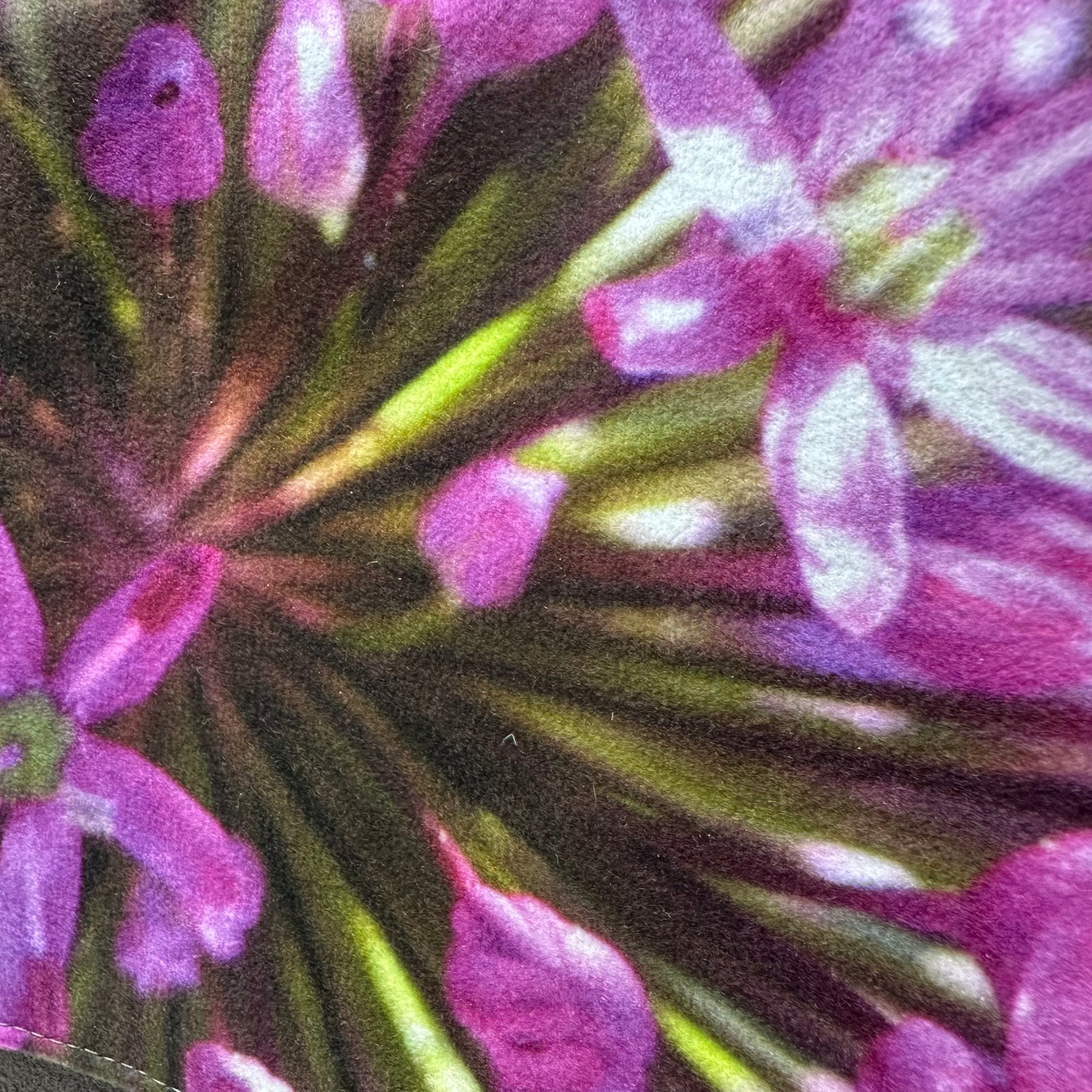 Dieses Velours-Cover zeigt ein detailliertes Fotomotiv eines Kugellauchs von Blüte und Blatt – naturgetreu und ästhetisch zugleich.