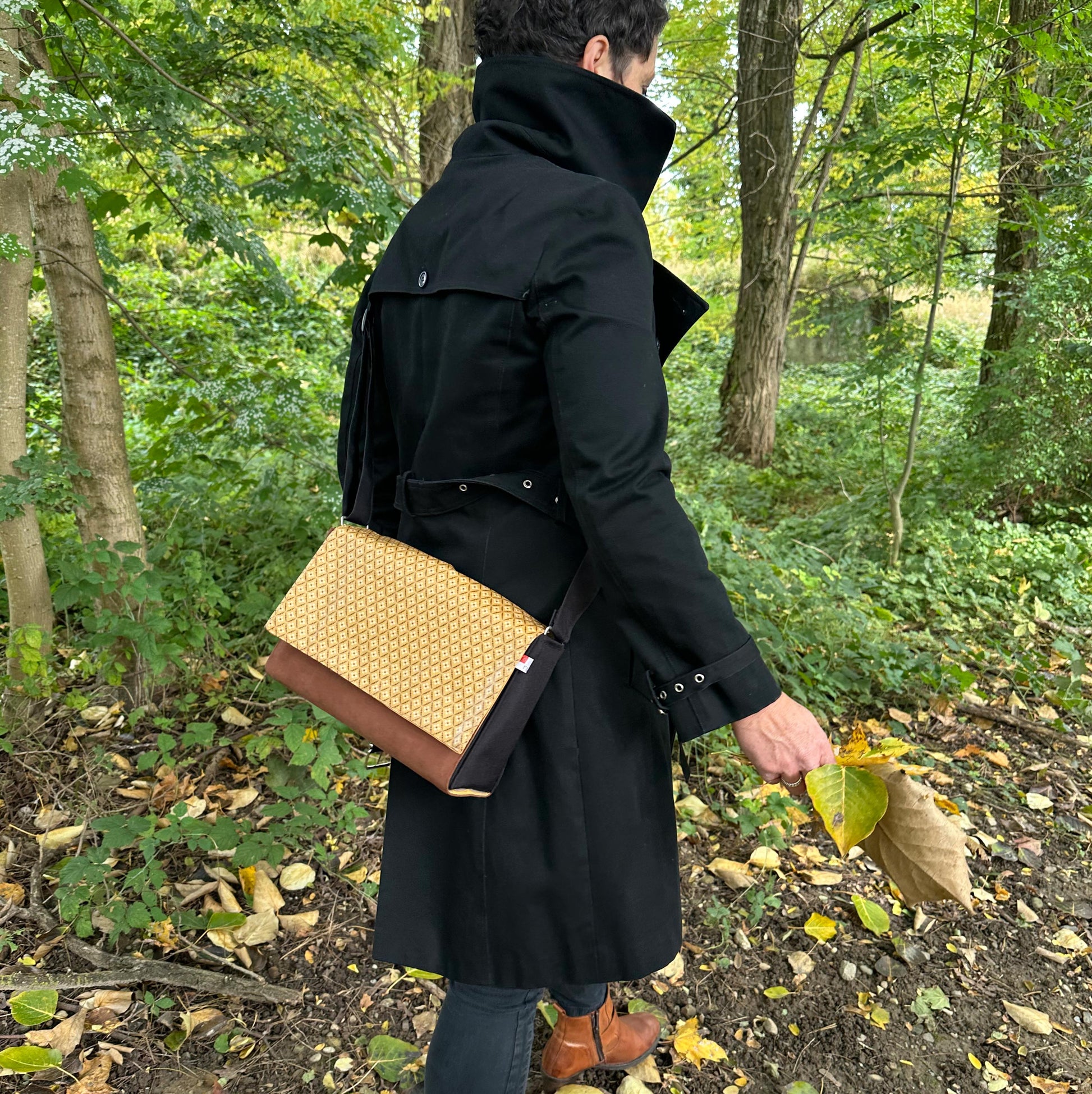 Dieses Cover besteht aus einem wasserdichten, senffarbenem Wachstuch mit feinem Rautenmuster. Es ist kombiniert mit hochwertigem, braunen Veloursstoff. Die perfekte Verbindung von praktischer Funktionalität und stilvoller Optik.
