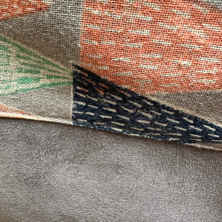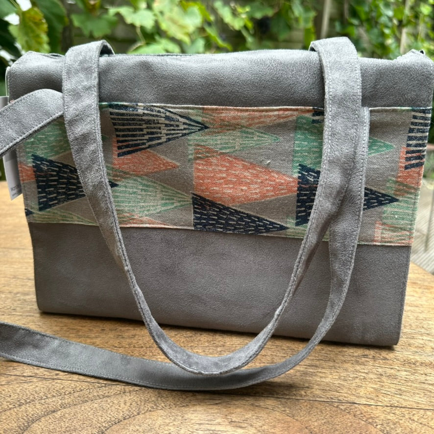 Cover für Wandeltasche als Schultertasche.Frischer, moderner Look aus weichem grauem Velours. Das elegante Design mit farbenfrohen Dreiecken in Blau, Mint und Lachs setzt einen harmonischen, geometrischen Akzent.