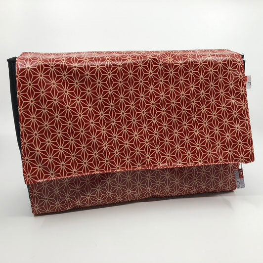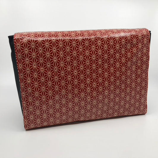 Dieses Cover aus rotem Wachstuch besticht durch ein feines, helles Ashanoa-Muster in kleiner Ausführung. Das wasserdichte Material schützt deine Tasche oder deinen Rucksack zuverlässig vor Nässe.