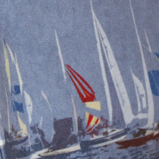 Dieses wunderschöne Bodenseecover aus samtweichem, blauem Velours begeistert mit farbigen Segelboot-Motiven – perfekt für alle, die das maritime Flair des Bodensees lieben.