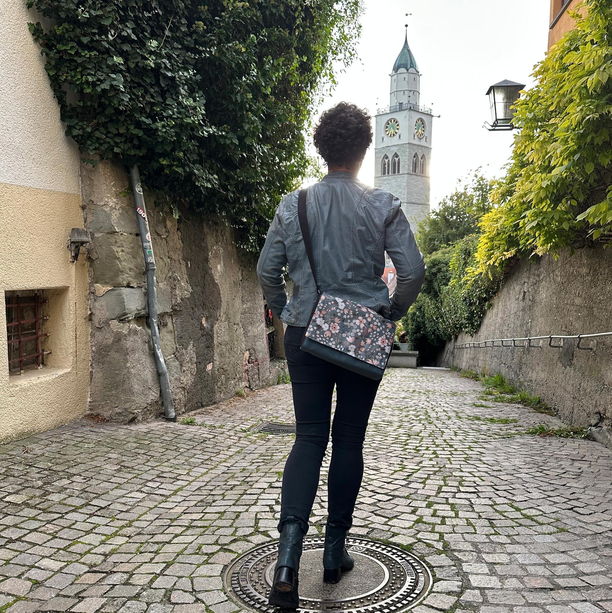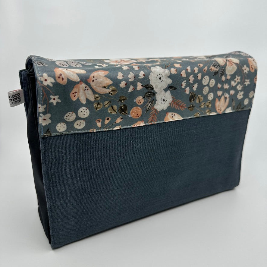 Der wasserfeste Stoff in hellpetrol ist mit Blüten in Rosé und Weiß verziert – feminin, freundlich und perfekt für den Alltag. Ob für die Stadt, den Spaziergang oder den Wochenmarkt: Dieses Cover macht deine Tasche zum stilvollen Begleiter bei jedem Wetter.