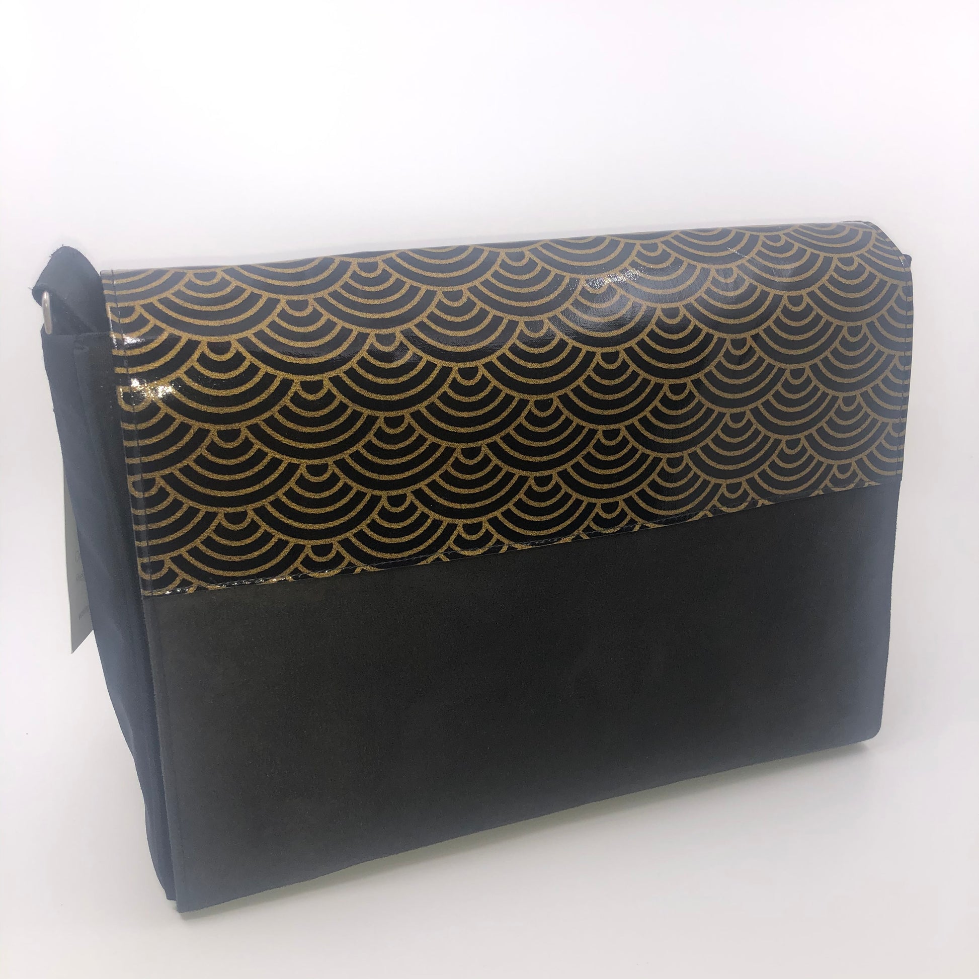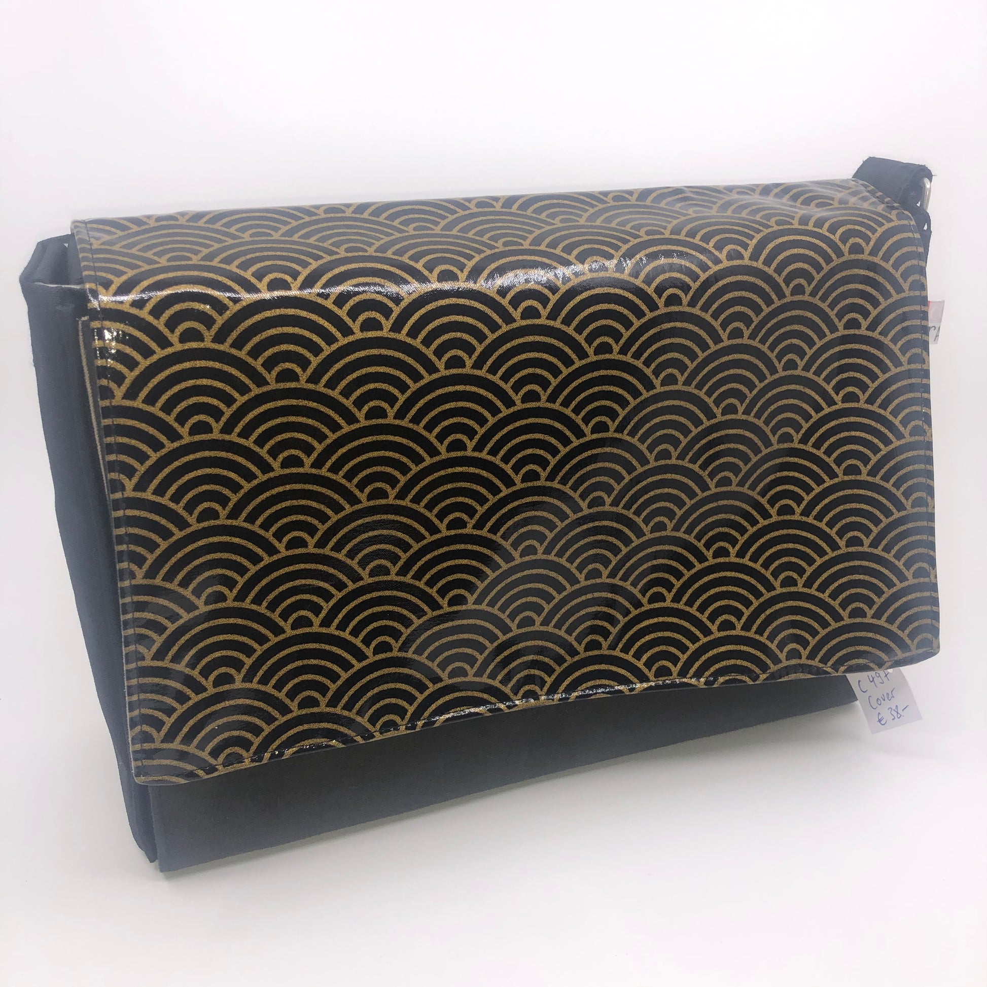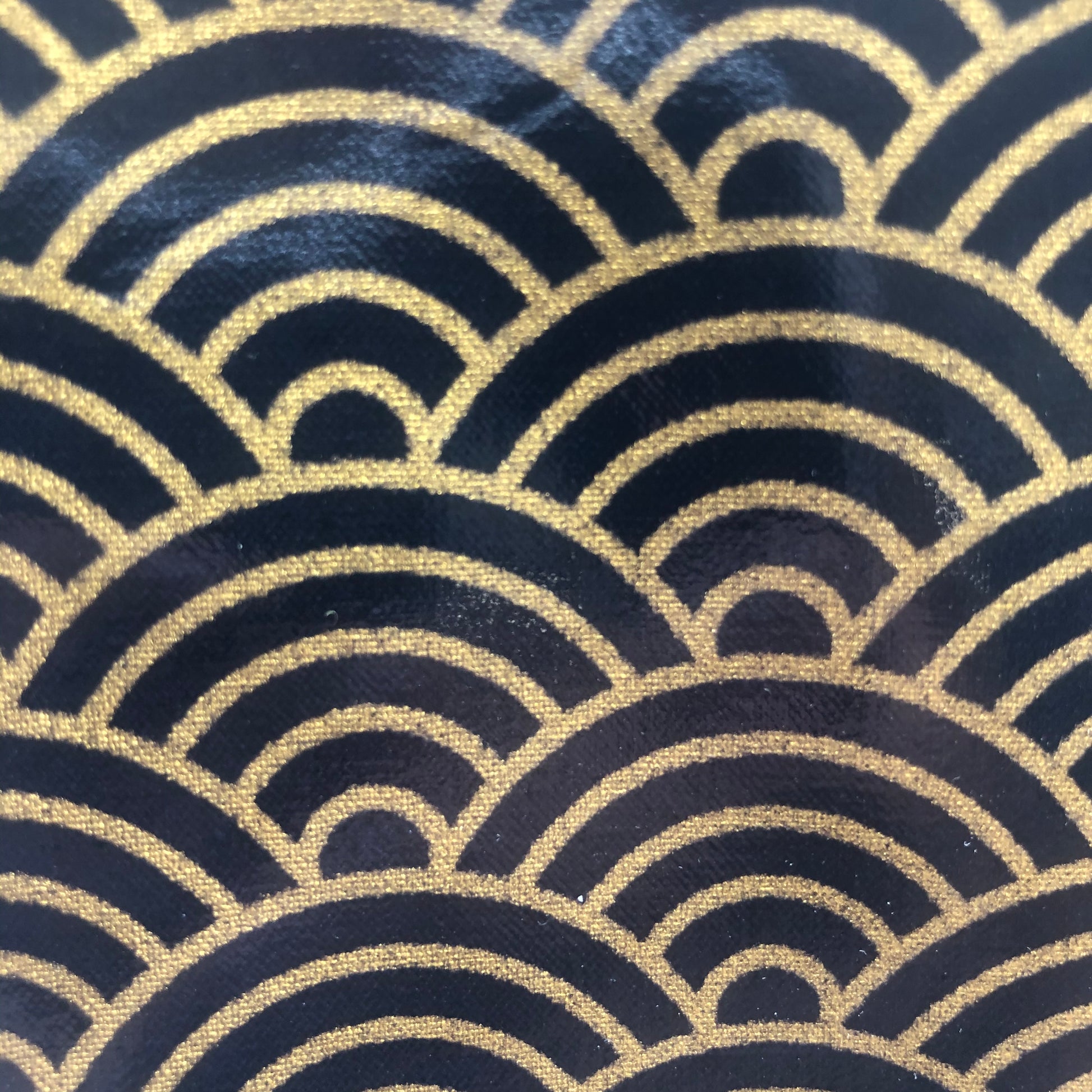 Cocomara Cover - Wachstuch in dunklem grün mit goldenen Bögen. Ein typisch japanisches Muster. Einfach schön.