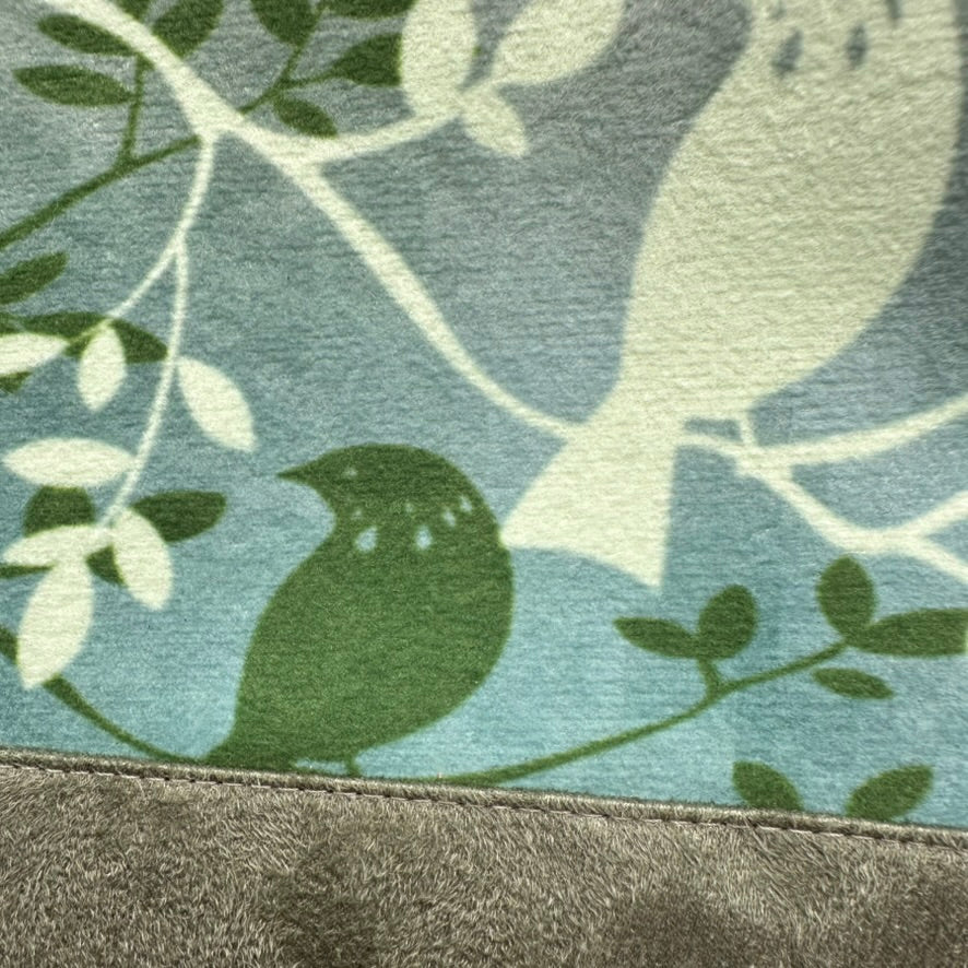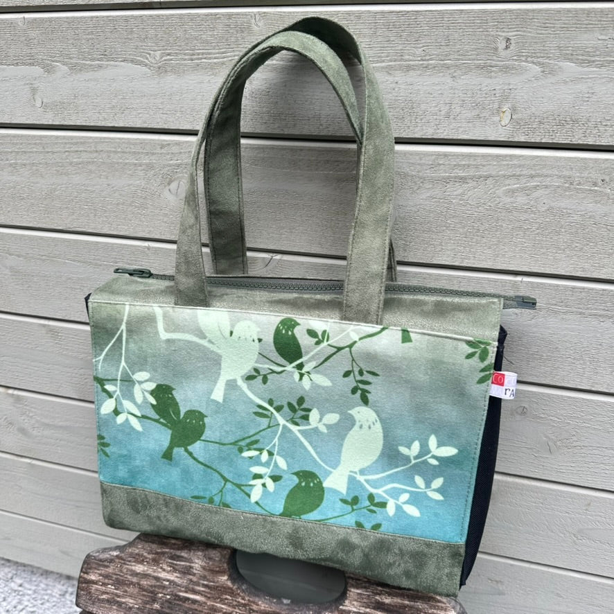 Bring frischen Wind in deine Henkeltasche mit diesem bezaubernden Cover in sattem Grün, das liebevoll mit einem verspielten Vogelgezwitscher-Motiv gestaltet ist.