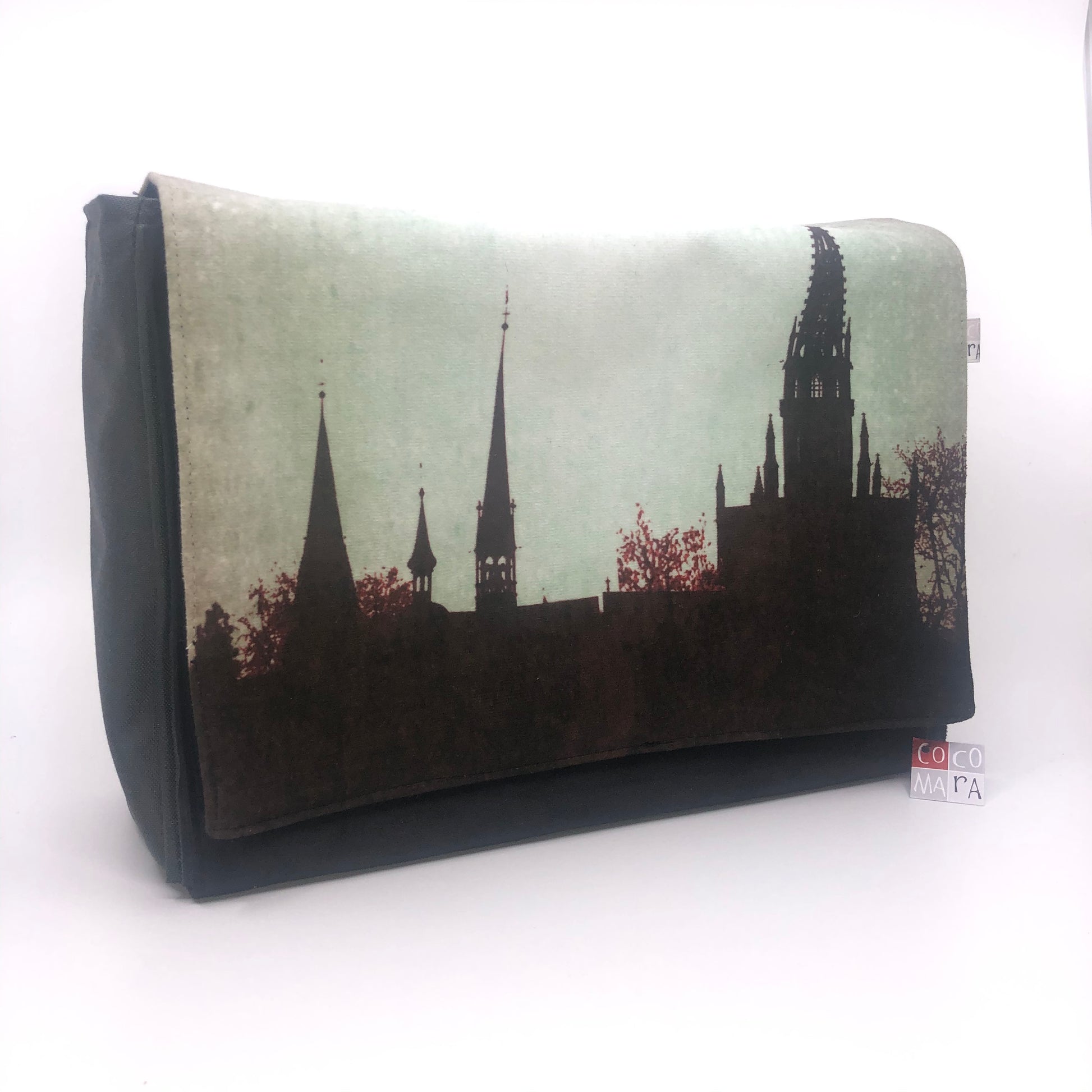 Dieses Wandeltaschen-Cover zeigt die imposante Stadtansicht von Konstanz als Digitaldruck auf Velours.