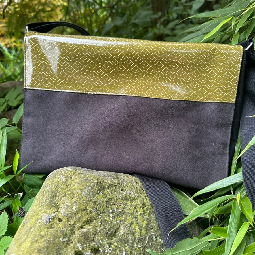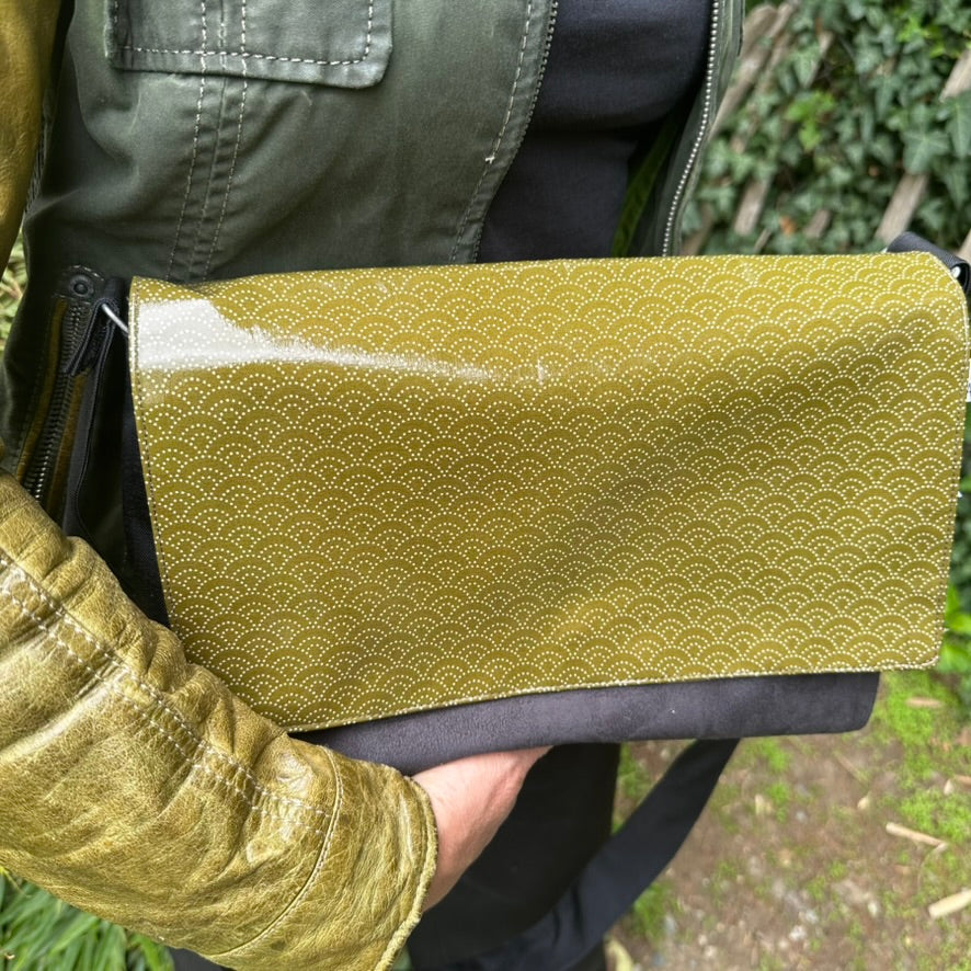 Dieses stylische Cover für deine Wandeltasche besticht durch seinen frischen hellgrünen Wachstuchstoff mit einem eleganten Muster aus weißen, punktierten Bögen im japanisch inspirierten Stil. Das Material ist wasserfest, schützt deine Tasche zuverlässig vor Nässe und Schmutz – perfekt für Alltag, Outdoor & Stadt.