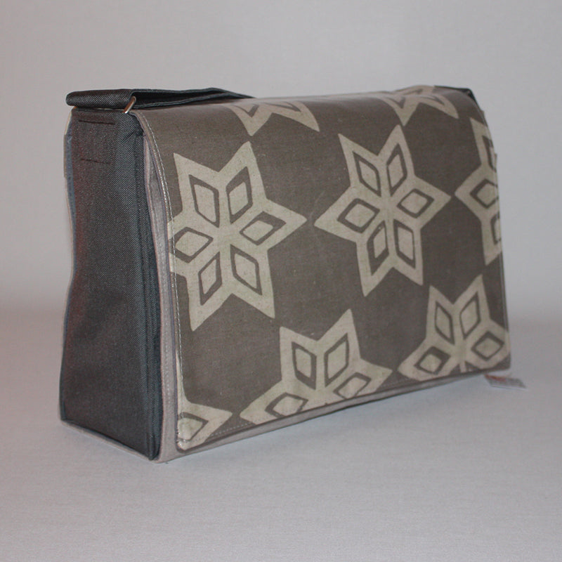 Wachstuchcover in grauem Stoff mit schönen Sternen. Winterlich? Weihnachtlich? Auf jeden Fall etwas Besonderes.