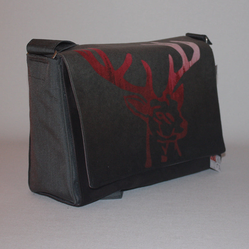 Hirschgeweih in Kombination mit Tannenwald. Fotodruck auf strapazierfähigen Velours.