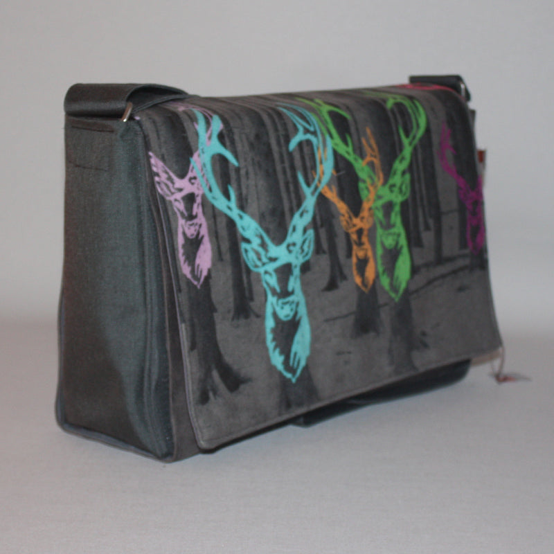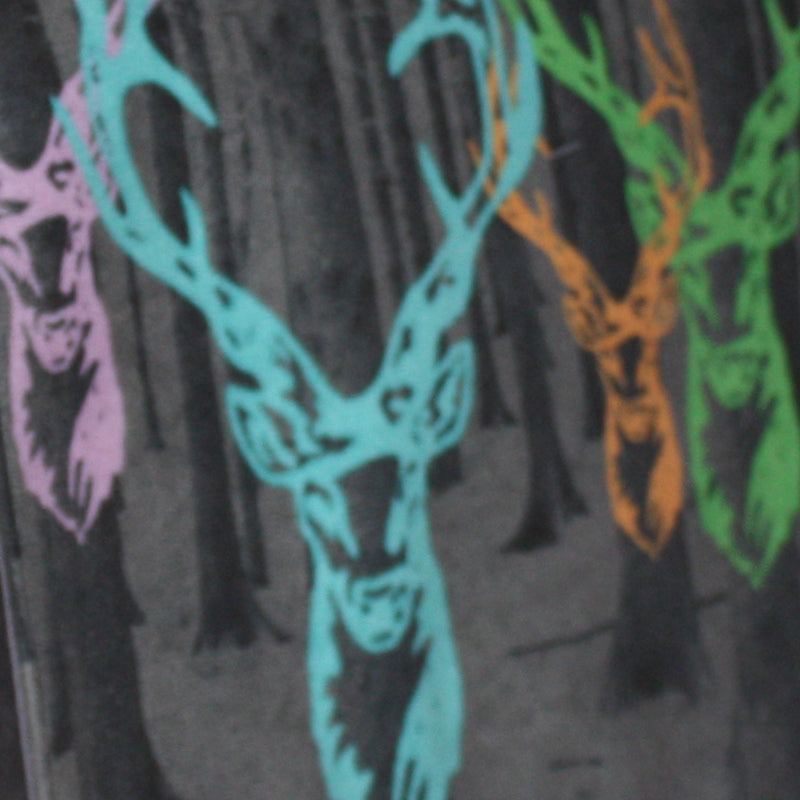Hirschfamilie im Tannenwald. Farbenfroh.Fotodruck auf strapazierfähigen Velours.