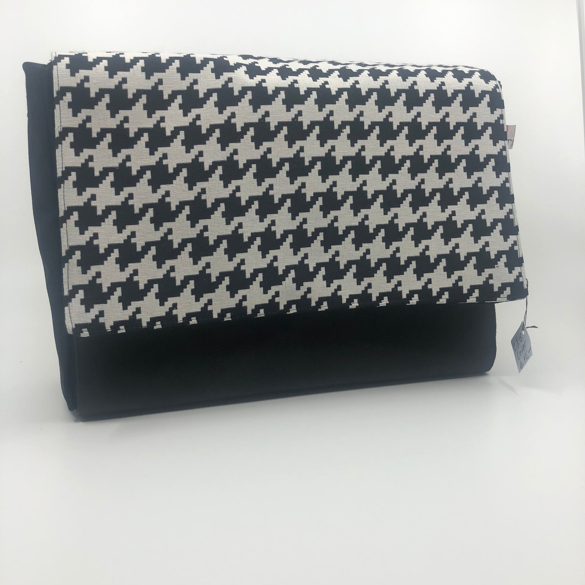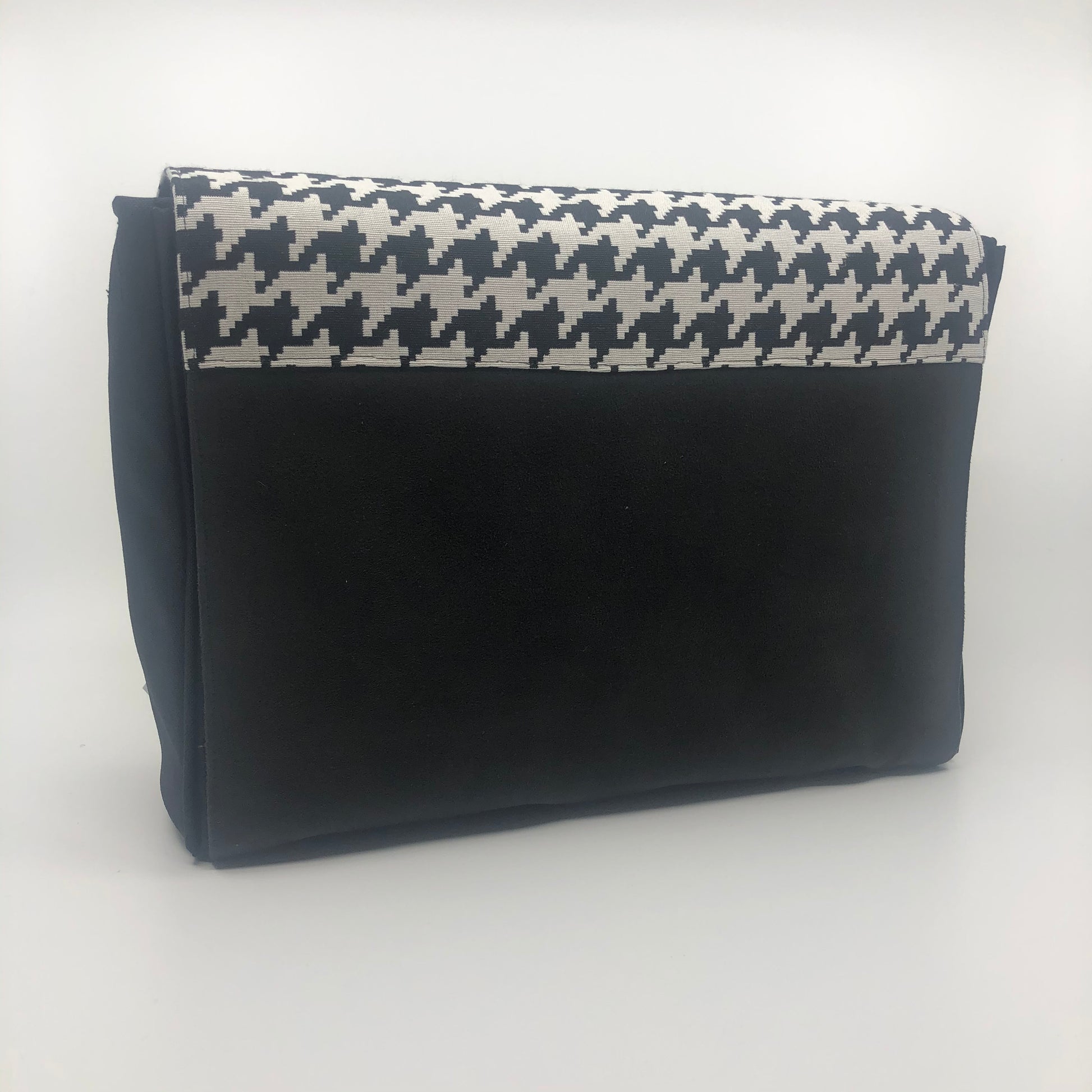 Der schwarz weiße Jacquardstoff mit markantem Hahnentrittmuster bringt Struktur und Stil in deinen Look, während der Veloursstoff strapazierfähig und unempfindlich im Alltag ist.