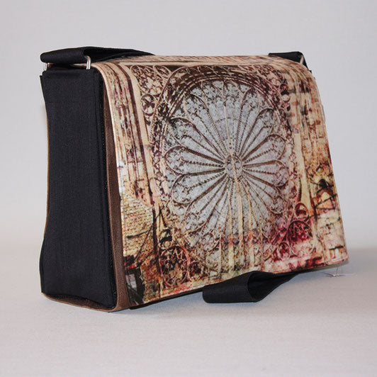Ein Stück Architekturgeschichte zum Mitnehmen: Dieses Cover aus bedrucktem Velours zeigt die beeindruckende Rosette der Kathedrale von Straßburg.